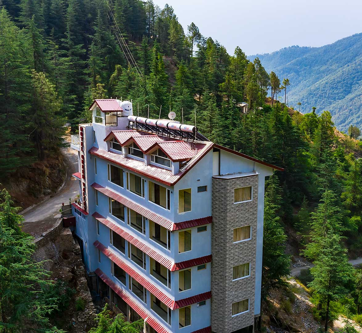 A cozy hotel nestled in a dense forest of pine and deodar trees, set against the backdrop of beautiful Shivalik hills in a small hamlet in Chail, Shimla hills, where refreshing mountain air and the tranquil backdrop set the mood for a peaceful stay with your beloved. An hour’s drive away from Chandigarh – Shimla National Highway through the divergence route in Kandaghat, and only 3 km from Asia’s highest cricket ground, the hotel is the best weekend getaway for hiking, bird watching, rock climbing, and cycling activities. The hotel is amidst a thick forest, promising a magnificent and panoramic view of the surrounding lush green pine and deodar trees for a refreshing holiday. Offering a wide variety of budget-to-mid-ranged rooms as well as luxurious family suites,